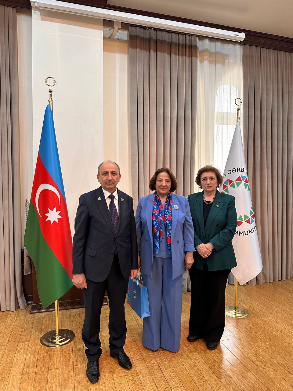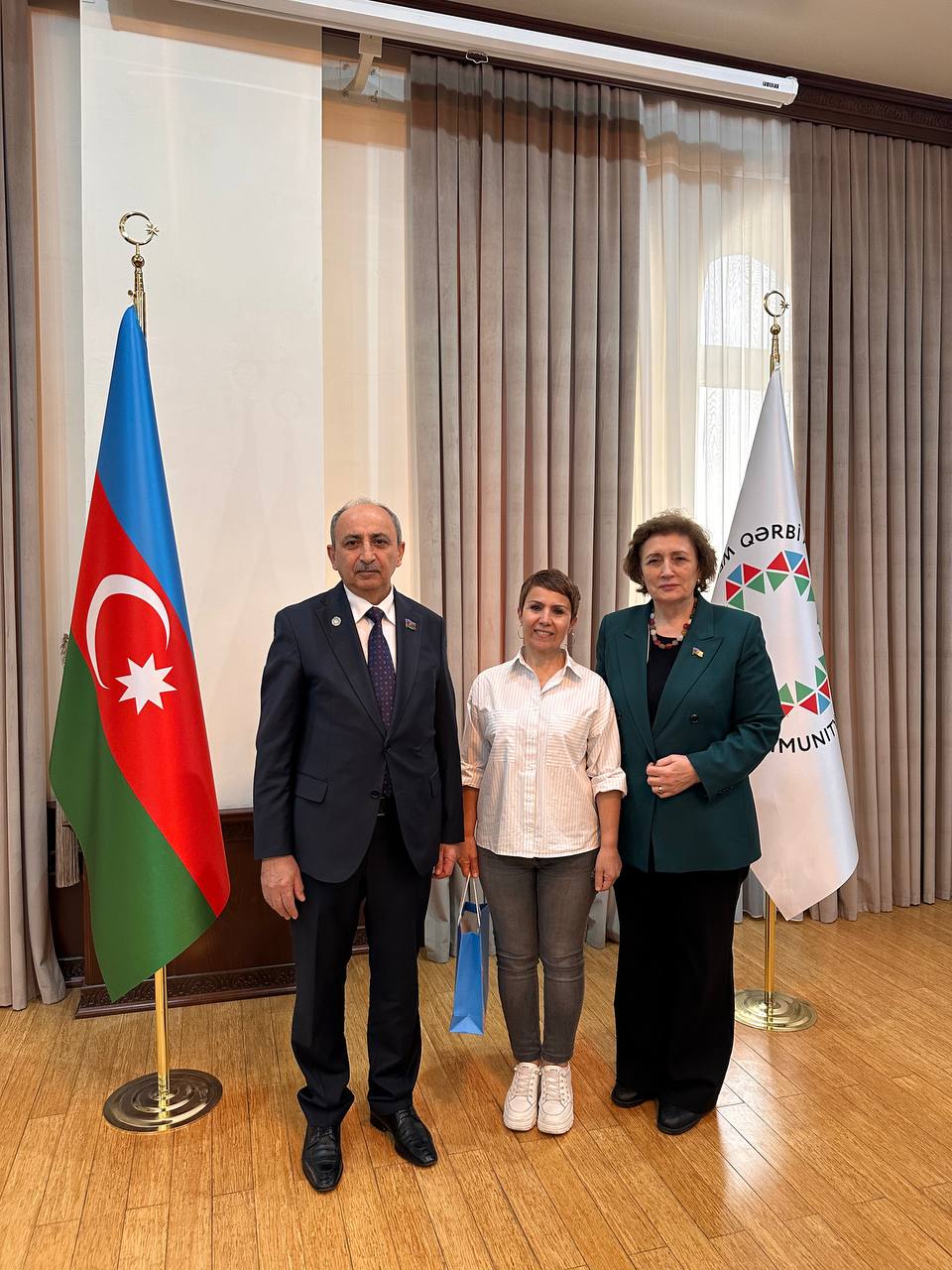 Qərbi Azərbaycan İcmasında qonaqları İdarə Heyətinin sədri, millət vəkili Əziz Ələkbərli, Qadınlar Şurasının sədri, millət vəkili Məlahət İbrahimqızı və İcmanın aparatında şöbə müdiri Faiq Kərimov qarşılayıblar.